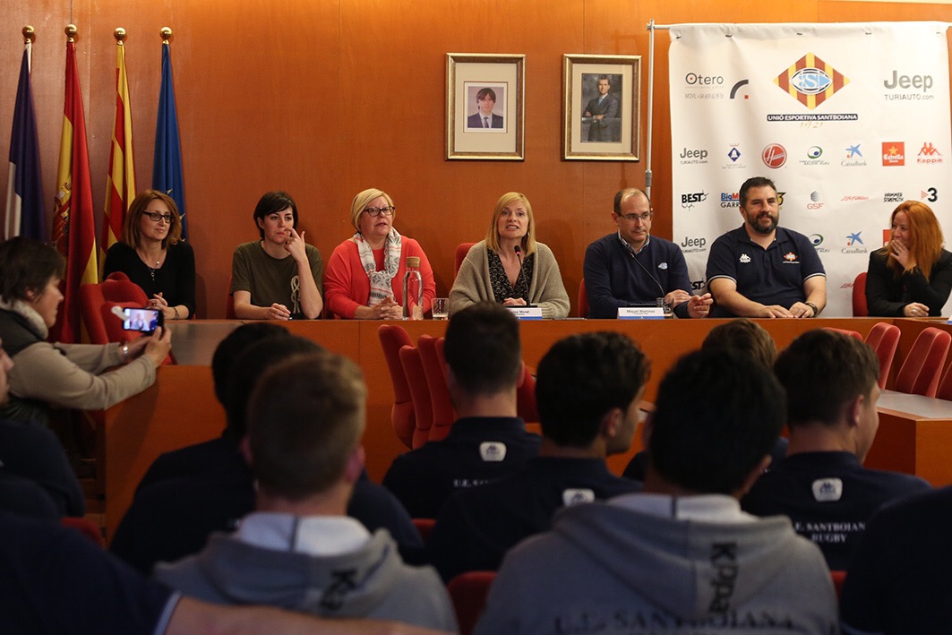 La roda de premsa va tenir lloc a la Sala de Plens i va comptar amb la presència dels jugadors de la UE Santboiana. El club català va donar les gràcies a l’Ajuntament de Sant Boi, l’Ajuntament de Logroño, el govern de la Rioja i el Club de Rugbi La Rioja “pel suport que ens han donat”.