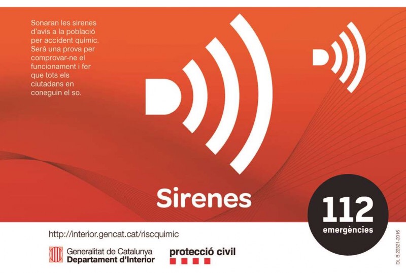 Aquest divendres, 21 d’abril al matí, tindrà lloc la primera prova de sirenes d’avís a la població per risc químic del 2017
