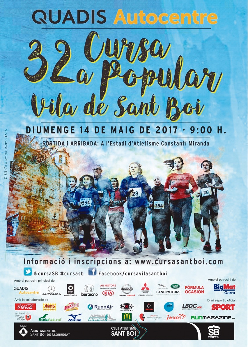 Avui diumenge 14 de maig es farà a Sant Boi la 32a edició de la Cursa Popular Vila de Sant Boi, una prova esportiva de fort caràcter solidari que cada any reuneix a centenars de corredors i corredores.