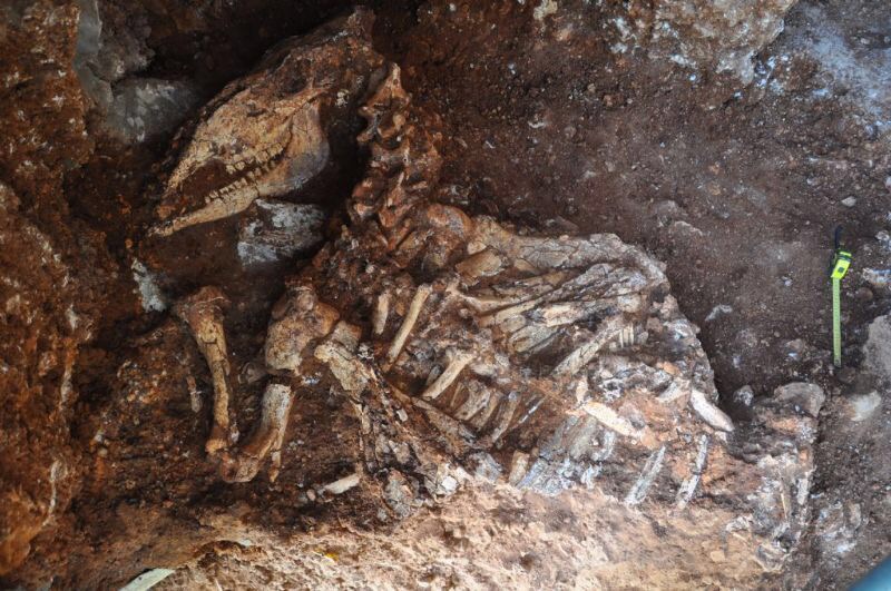 Un dels grans aliats per a l’exploració que vol portar a terme l’arqueòloga serà el propi animal, del que s’ha conservat gairebé tot el cos: el crani, les mandíbules, la columna i les extremitats anteriors. Peces que suposen un gran pista pels estudiosos per la seva grandària o desgast.