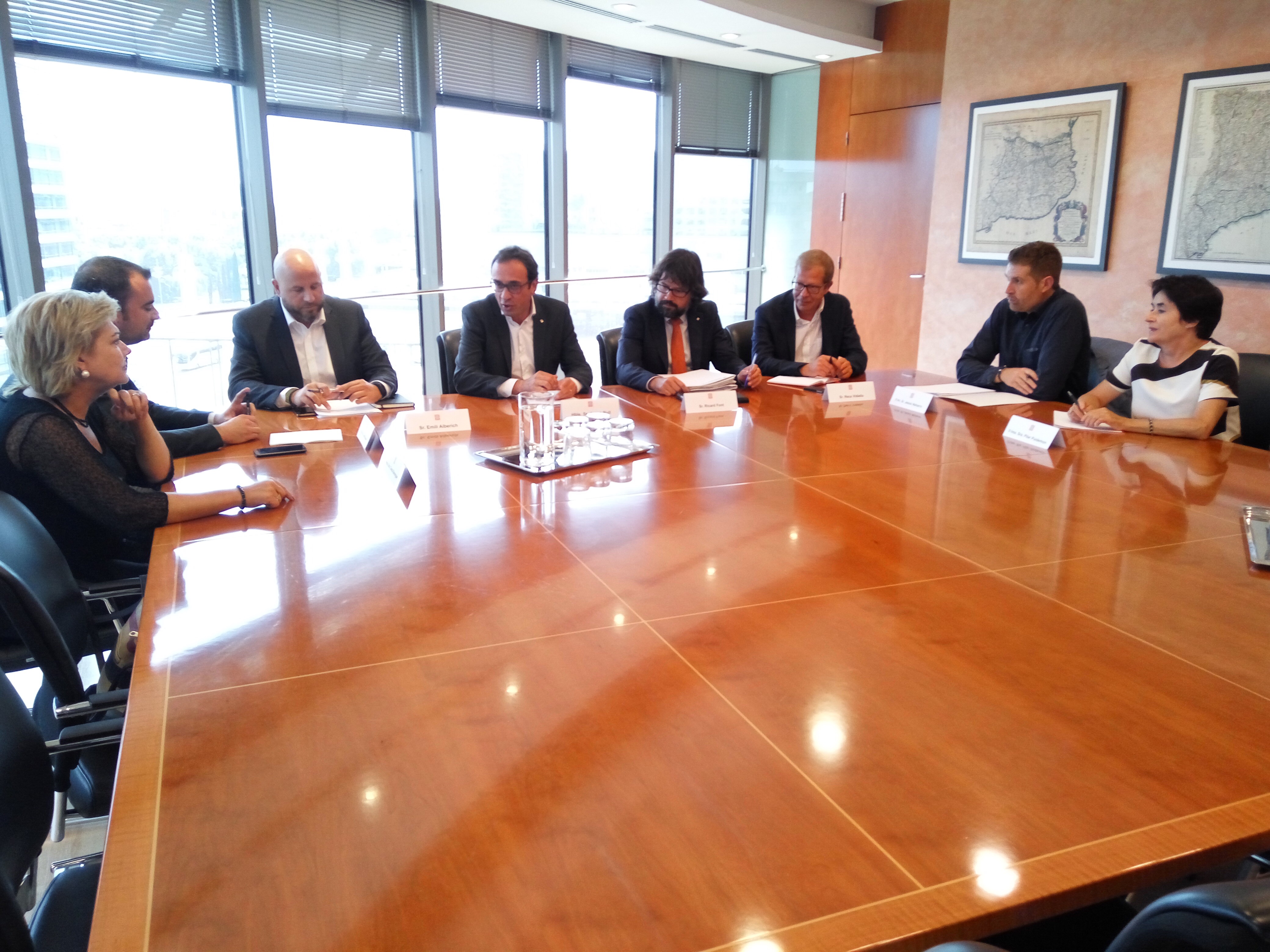 Els alcaldes i alcaldesses de Terrassa, Jordi Ballart; de Viladevacalls, Cesca Berenguer; d’Abrera, Jesús Naharro, i d’Olesa de Montserrat, Pilar Puimedon, es van reunir ahir amb el conseller de Territori i Sostenibilitat, Josep Rull, a la seu del Departament per fer front comú i reclamar al Ministeri de Foment que acceleri les obres per finalitzar l’últim tram de la B-40 que resta, la connexió Olesa-Viladecavalls.