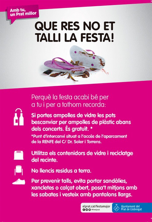 Aquesta mesura, donada a conèixer amb la campanya “Que res no et talli la festa”, pretén reduir el nombre de vidres trencats al terra i, com a conseqüència, els talls als peus. Aquest perill és especialment present quan fa calor, ja que moltes persones calcen xancletes i la possibilitat de tallar-se augmenta. Des que s’ofereix aquest servei, el nombre d’incidències per talls als peus s’ha reduït força.