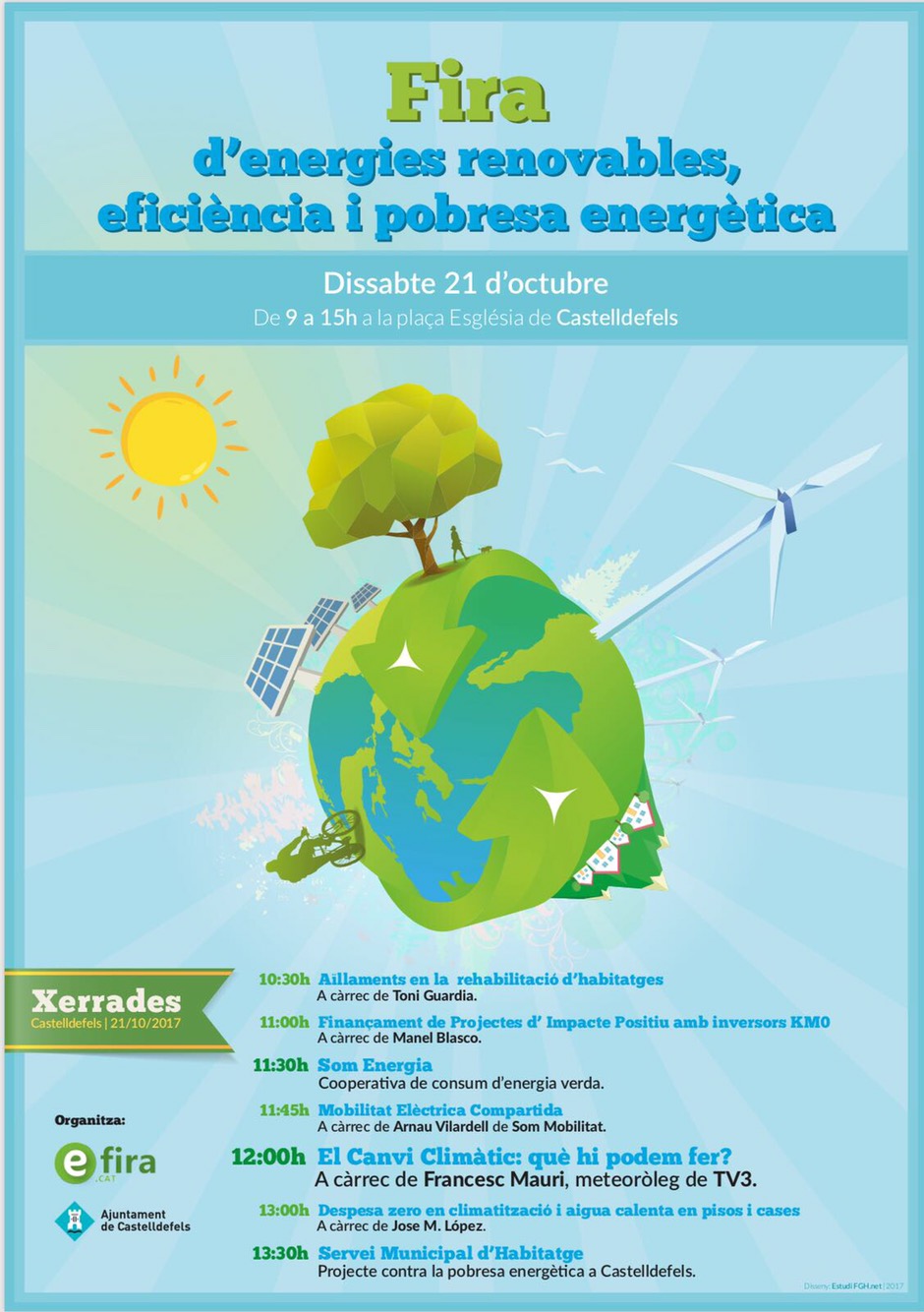 La plaça de l’Església de Castelldefels acull aquest dissabte 21 d’octubre la primera Fira d’Energies Renovables, Eficiència i Pobresa Energètica amb l’objectiu d’impulsar un model energètic renovable i eficient.