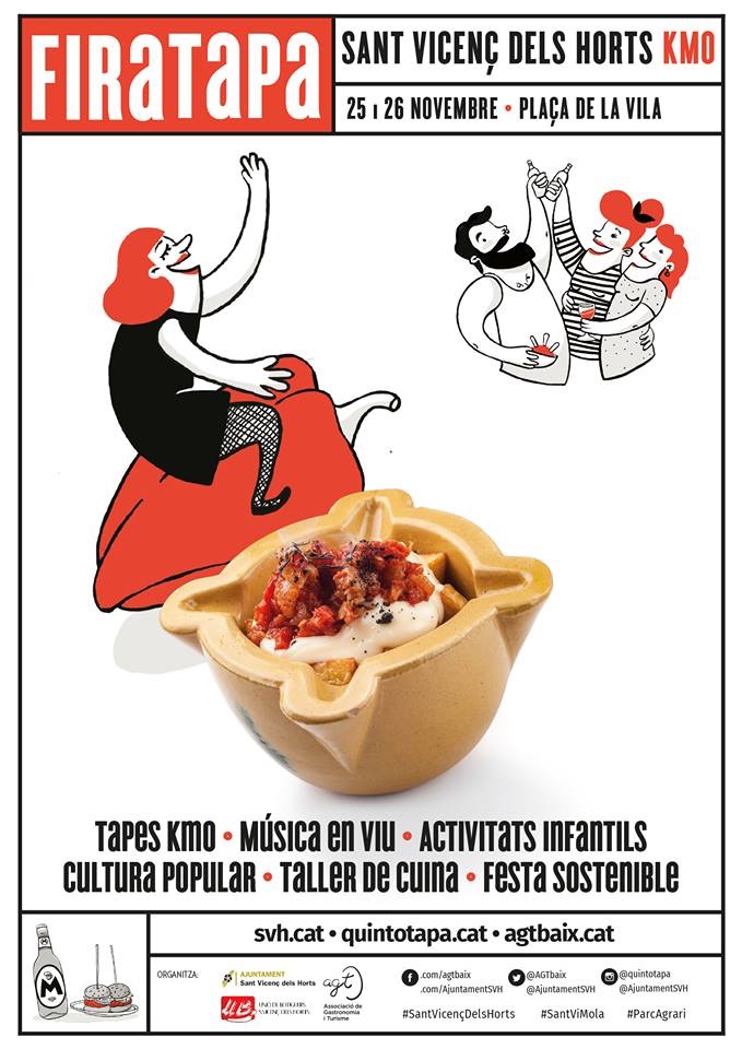 El 25 i 26 de novembre se celebrarà la primera edició de la FiraTapa Km0 a la plaça de la Vila de Sant Vicenç dels Horts, com a festa final del QuintoTapa, que es va organitzar del 2 al 19 de novembre. Serà una nova oportunitat per tastar les creacions culinàries dels bars i restaurants locals amb el producte autòcton del Baix Llobregat
