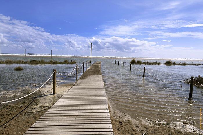 La crescuda del nivell del mar producte del temporal, amb fort onatge i baixes pressions, va provocar que els diferents col·lectors situats a la costa i que porten l’aigua de la pluja fins al mar no puguessin desguassar.