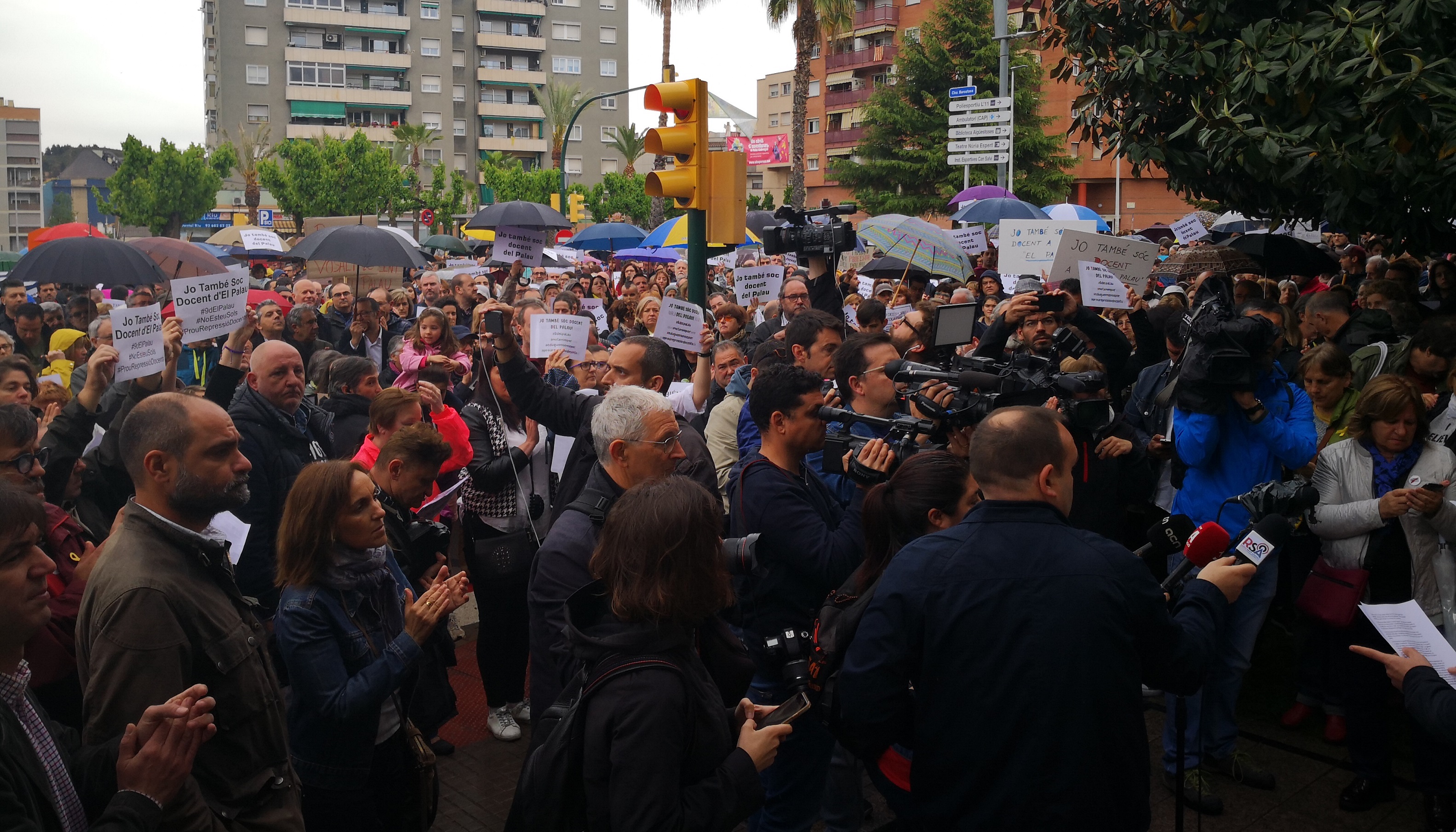 Els col·lectius vinculats a l’educació també van fer acte de presència ahir per tancar files amb el professorat de l’IES El Palau després de 7 mesos de silenci per part de la comunitat educativa. Mireia Valentí, delegada sindical d’USTEC-STEs al centre, assegurava que “el silenci s’ha acabat” i que s’ha “trigat massa” a l’hora d’actuar. A partir d’avui mateix, el veïnat i la societat civil – d’on ha nascut el suport als professors – es reuniran amb professors i sindicats i s’auguren “futures accions més potents” que la d’ahir.