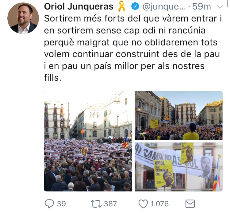 “Hem de continuar resistint; si vosaltres persistiu, nosaltres resistim”, han escrit, tot afegint que això és el que “s’ha de fer ara”.