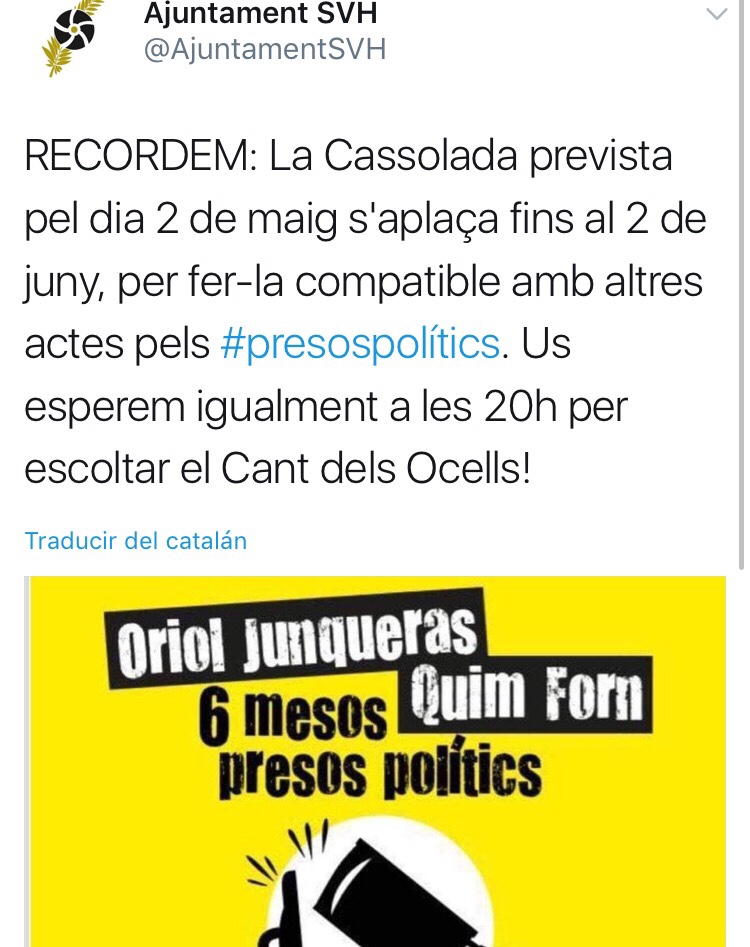 La concentració també estava prevista a la localitat de Junqueras i de la va ser alcalde, Sant Vicenç dels Horts. Per a no interferir en la convocatòria de Barcelona i que la manifestació a la capital esdevingués unitària, l’acte local de suport s’ha aplaçat fins al proper 2 de juny.