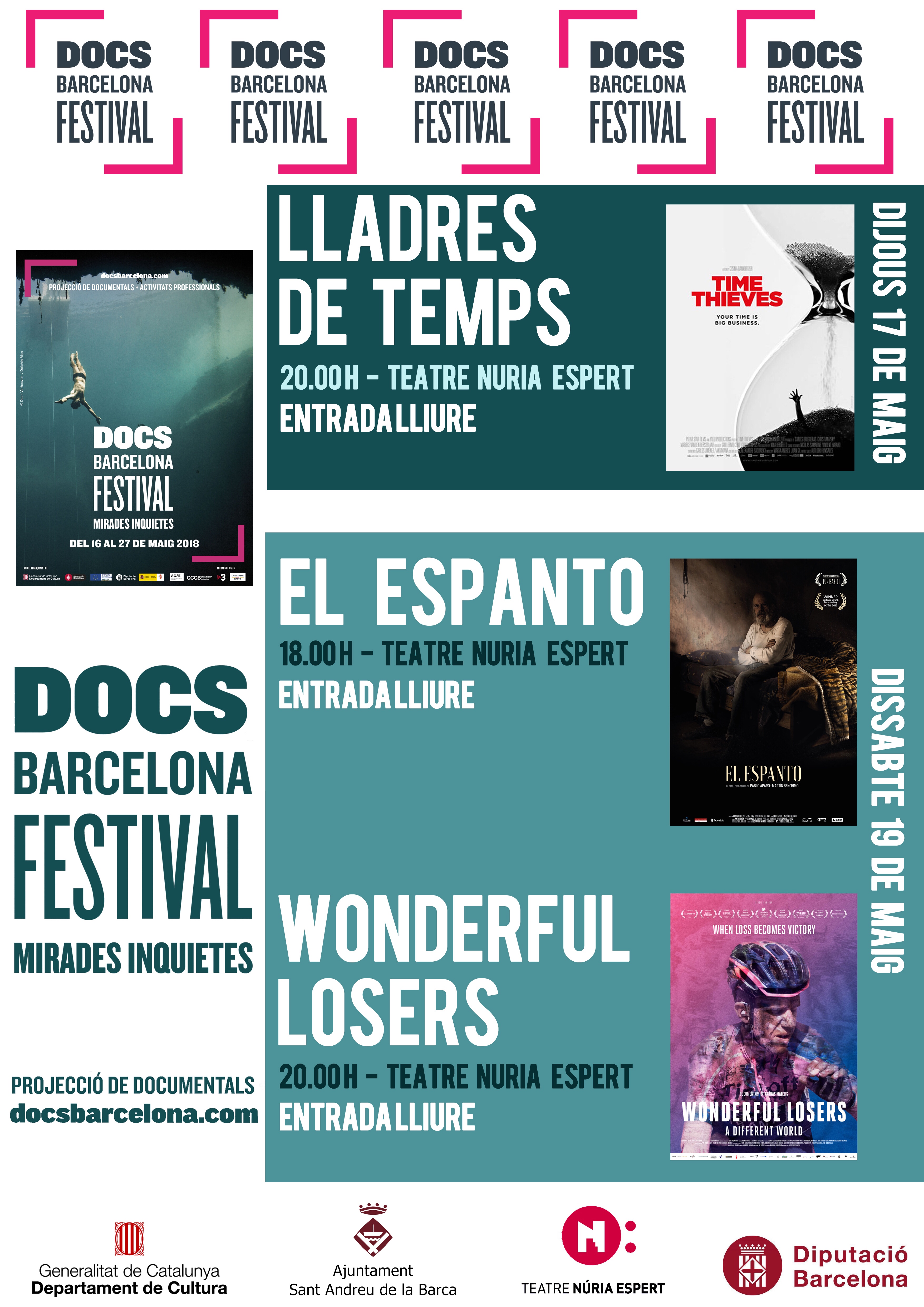 En el marc del festival, el Teatre Núria Espert és l’escenari de tres documentals de la selecció d’aquest any: “El Espanto”, “Time Thieves, ladrones del tiempo” y “Wonderful Losers”.