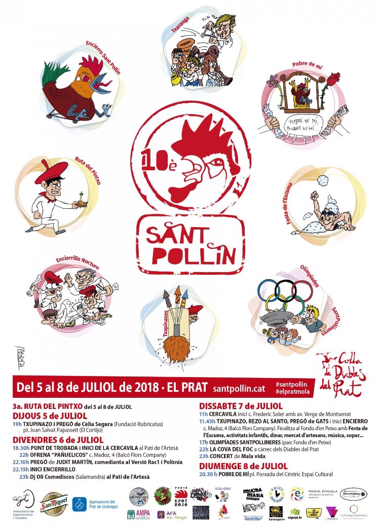 La cultura al carrer tindrà el seu toc gastronòmic, amb la III Ruta del Pintxo Sant Pollín. L’Associació de Gastronomia i Turisme del Baix Llobregat -AGT-, torna a col·laborar amb una ruta el 5 i 6 de juliol amb restauradors del Prat que oferiran un pintxo amb productes de temporada del Parc Agrari i Quinto San Miguel per només 3€. Dissabte 7, festa gastronòmica al Fondo d’en Peixo durant tot el dia, carregant forces per a la Cova del Foc.