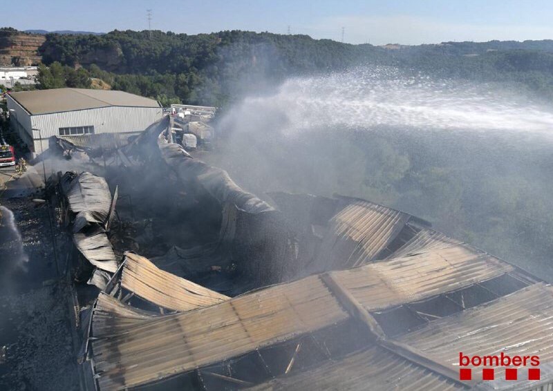 El foc, controlat aquest diumenge al vespre, va calcinar la nau de 1000 m2, que va acabar ensorrant-se. El dispositiu dels Bombers, que van arribar a treballar amb prop d’una vintena de dotacions, va impedir que les flames es traslladessin a les naus veïnes. L’incendi va provocar una columna negra de fum que va ser visible des de molta distància.
