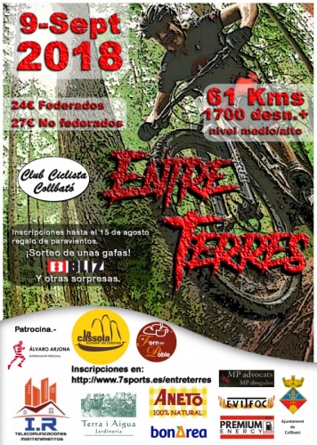 La recollida de dorsals es farà el dissabte 8 de setembre a la tarda i el mateix dia de la cursa. Més endavant es donaran més detalls. Per fer la inscripció, pots anar a http://7sports.es/entreterres/. Si vols contactar el Club Ciclista Collbató per a més informació, els pots escriure a c.c.collbato@hotmail.com.