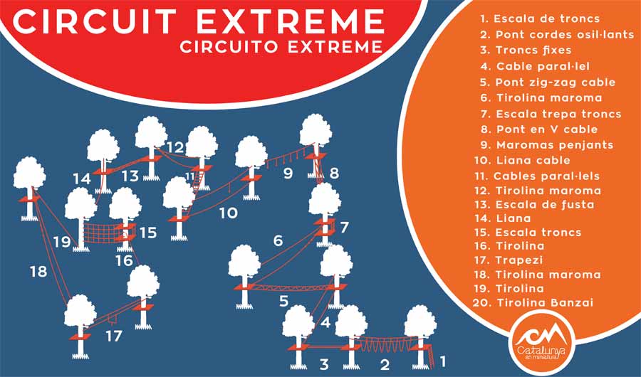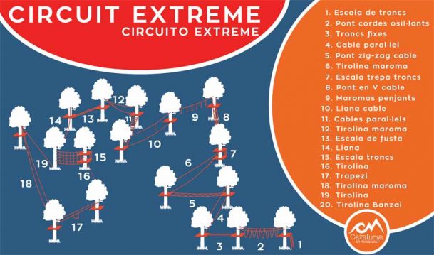 Un circuit infantil per a nens de 4 a 7 anys, un circuit mitjà per a nens de més de 1,20m, un circuit extrem per a nens de més de 8 anys i una Tirolina amb un tiratge de 150 metres de cable son totes les activitats que es poden realitzar. A més, Catalunya en miniatura compta amb una exposició de maquetes a escala 1:25 de tots els monuments més representatius de les terres catalanes.