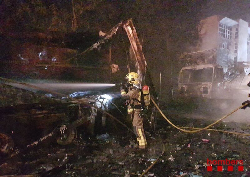 Les flames també afecten la façana d’una empresa i una vintena de finestres d’una nau propera
