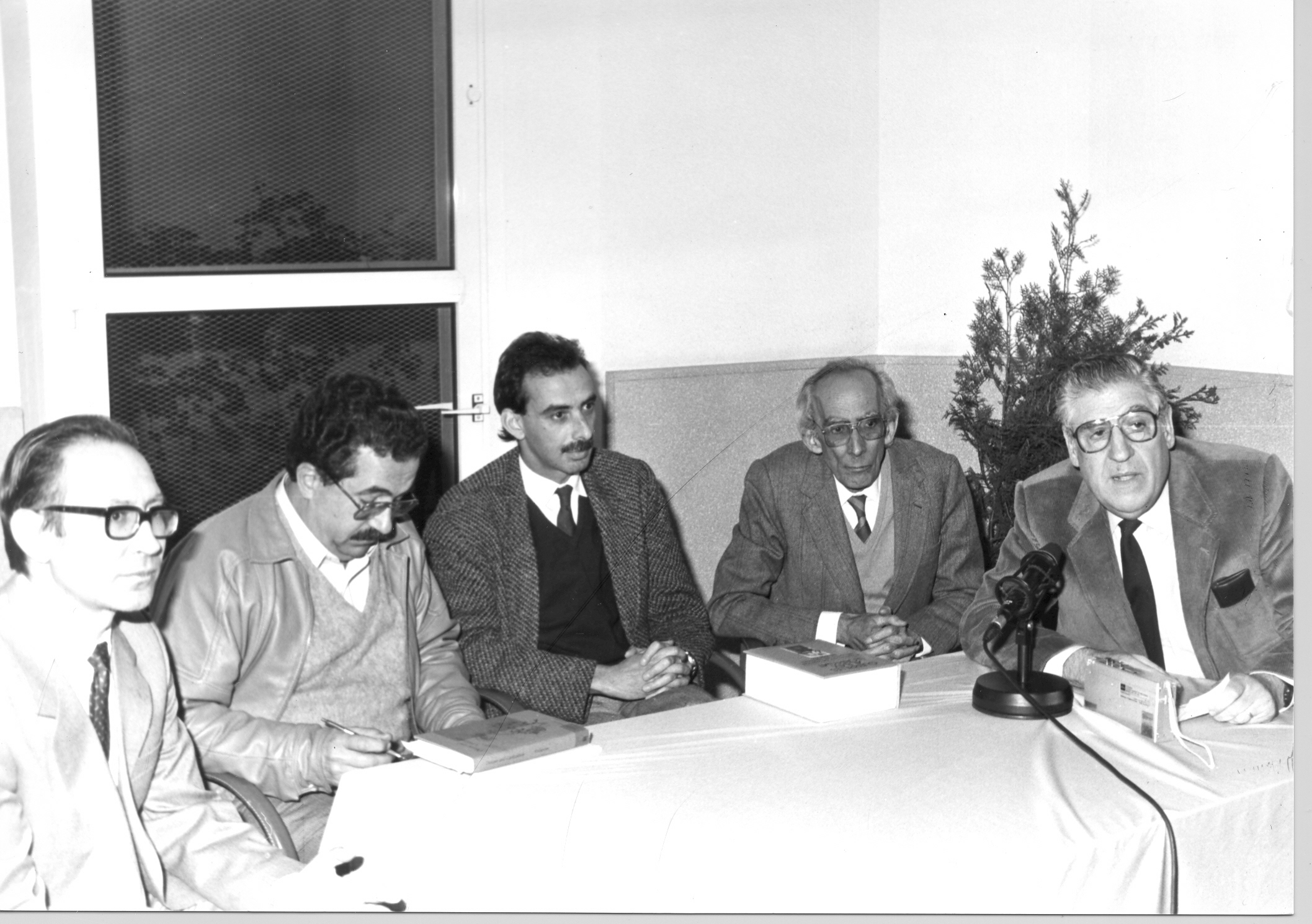 Imatge: Acte de presentació del llibre “Guerrillas al Baix Llobregat” a Can Ricart (Sant Feliu de Llobregat). D’esquerra a dreta: Josep Massot, director de les publicacions de l’Abadia de Montserrat, l’historiador Josep Fontana, Francesc Baltasar, alcalde de Sant Feliu de Llobregat, l’historiador Josep Benet i Jaume Codina, president del Centre d’Estudis Comarcals del Baix Llobregat, 26 de novembre de 1986. Fotògraf: Blas Serrano. ACBL. Fons Ajuntament de Sant Feliu de LLobregat.