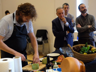 Durant la presentació, diferents restaurants de Sant Joan Despí que participen en les jornades han donat a conèixer els seus menús, que estan inspirats en l’obra de Josep Maria Jujol en commemoració de l’Any Jujol140. A més, el cuiner Rafa Peña, xef del restaurant Gresca de Barcelona i padrí de les Jornades Gastronòmiques, ha ofert un showcooking en què ha preparat un plat a partir de productes del Parc Agrari del Baix Llobregat.
