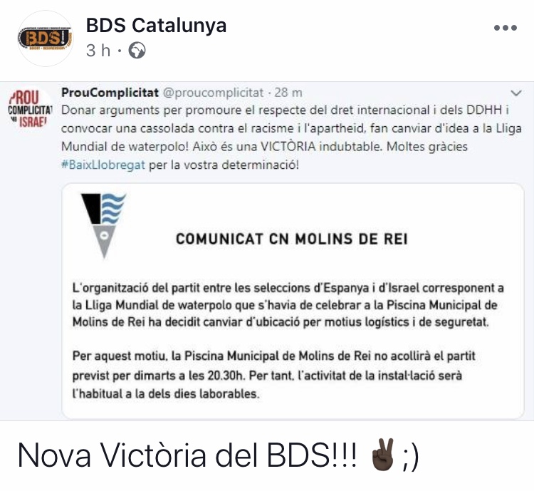 El Club Natació de Molins de Rei ha expressat en un comunicat la decisió de l’organització, de suspendre el partit de la Lliga Mundial de Waterpolo entre les seleccions d’Espanya i Israel