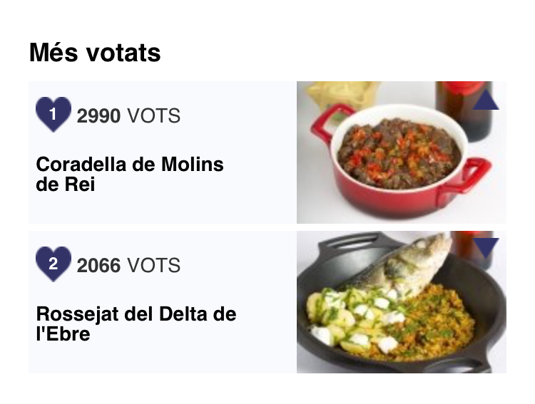 Durant la primera fase, que va es obrir el 22 d’octubre, s’han emès més de 25.000 vots per decidir els quatre semifinalistes entre els 12 primers plats seleccionats. La coradella de Molins de Rei va ser el plat més votat, amb 3.367 vots, en aquesta primera fase.
