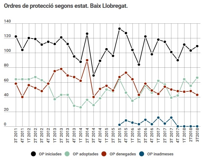 En el tercer trimestre de 2018 creixen les ordres de protecció iniciades al Baix Llobregat.