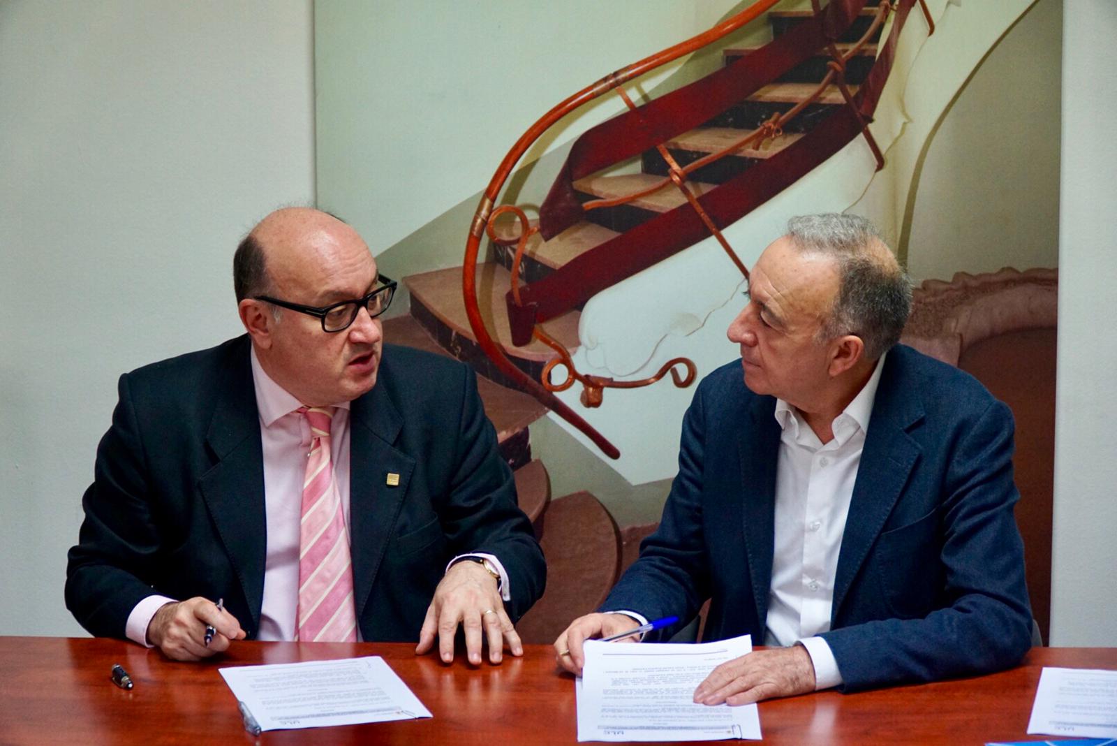 L’alcalde de Sant Joan Despí, Antoni Poveda, i el rector d’UIC Barcelona, Xavier Gil, han subscrit aquest dimecres 19 de desembre l’acord de col·laboració entre les dues institucions per a la promoció de l’Any Jujol140.