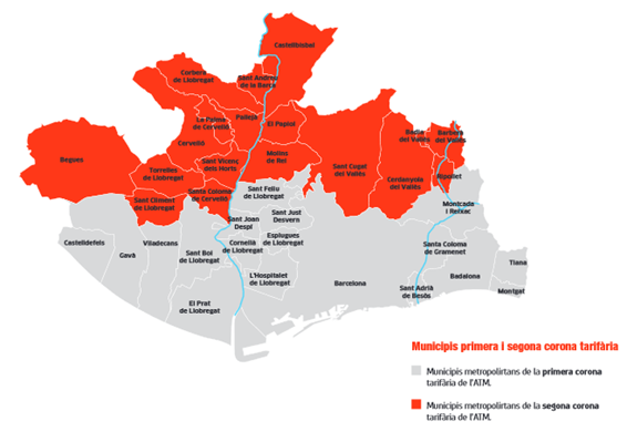 Cap municipi del sistema no ha canviat de zona tarifària, però a tots els desplaçaments que es facin dins l’àmbit dels 36 municipis metropolitans (que se situen a la primera corona i parcialment a les zones 2A, 2B i 2C de la segona corona) els aplica la nova tarifa d’una zona, tant si es fan amb títols integrats (excepció feta de la T-16) com si es fan amb bitllet senzill.