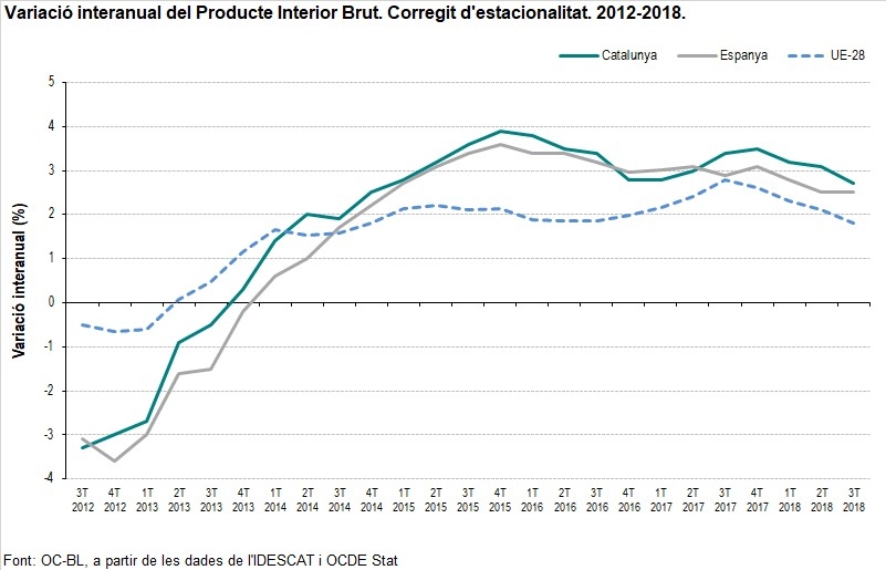 L’Observatori Comarcal publica les darreres dades publicades per l’IDESCAT que també inclouen les darreres dades trimestres del PIB català, espanyol i europeu.