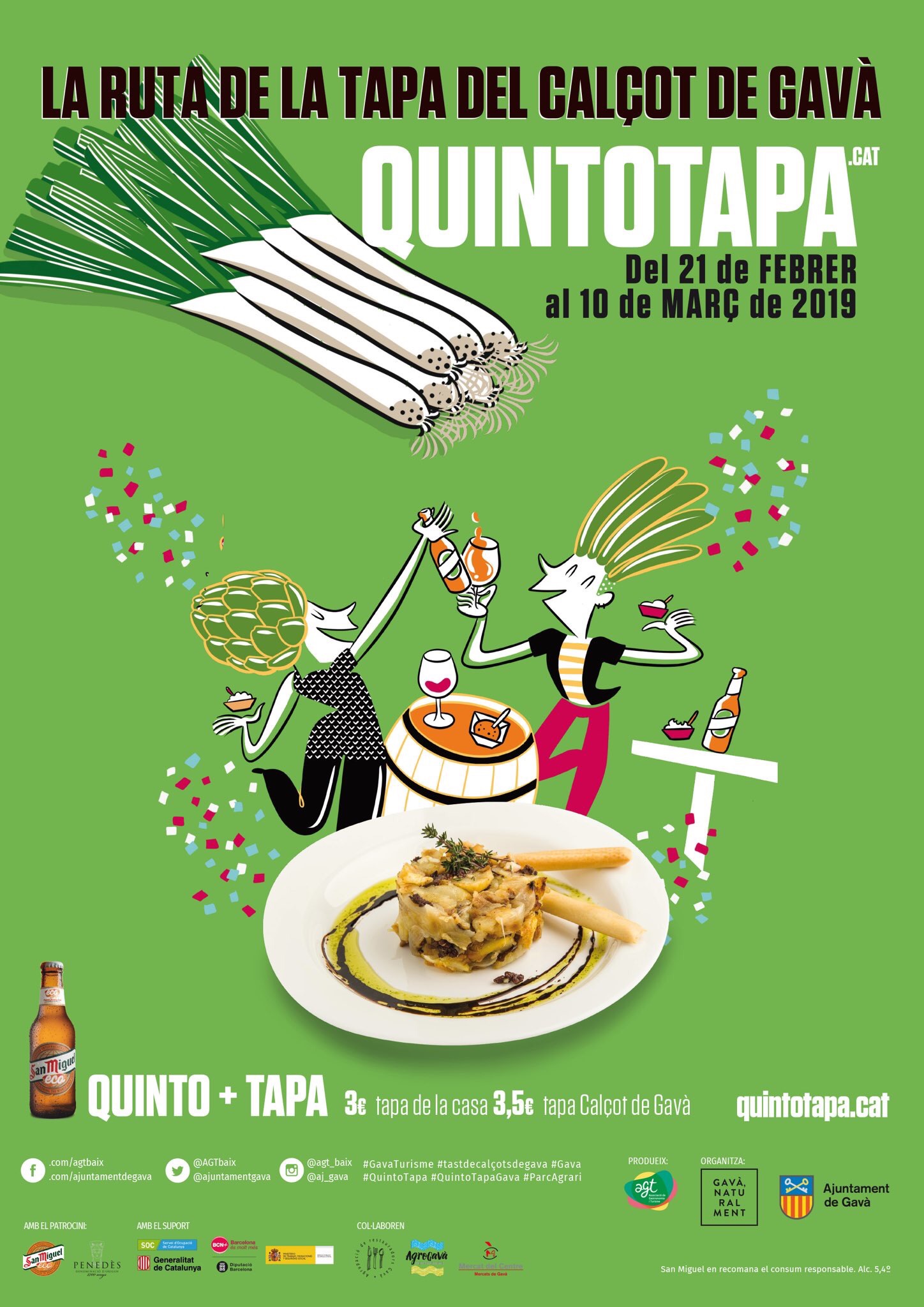 Per aquesta raó, del 21 de febrer al 10 de març, es podrà gaudir de l’anomenada Ruta Gastronòmica de tapes a diversos restaurants i cafeteries i on, sota el sistema “Quinto tapa”, es podrà assaborir un platet amb el calçot com producte principal acompanyat d’una cervesa.