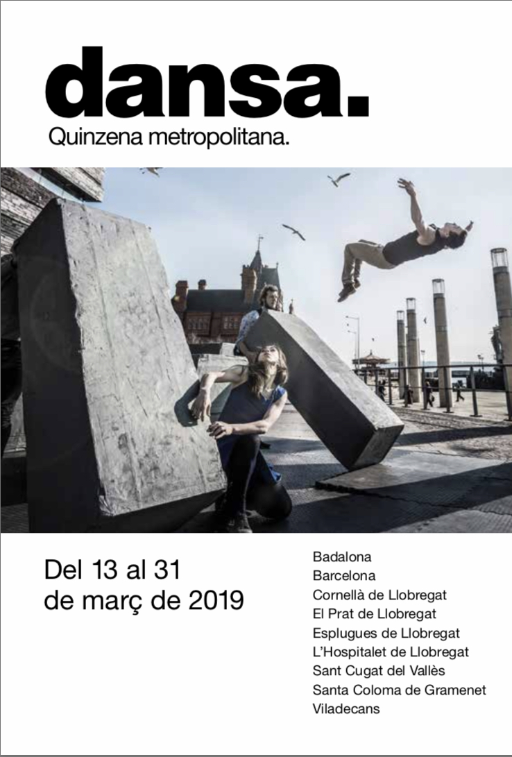 Del 13 al 31 de març, Dansa Metropolitana programa més d’un centenar de funcions a diferents espais, a Barcelona, Badalona, l’Hospitalet, Santa Coloma i al Baix Llobregat a Cornellà i Esplugues.Com a novetat aquest any s’hi sumen el Prat, Viladecans i Sant Cugat.