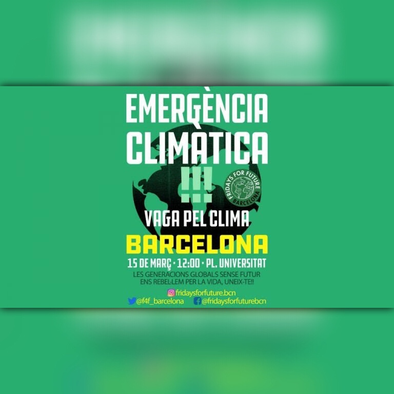 Les mobilitzacions contra el canvi climàtic que han protagonitzat els estudiants a diversos països europeus van arribar aquest divendres a Barcelona i Tarragona, on el Sindicat d’Estudiants va convocar una manifestació, a les 12 del migdia, a la mateixa hora que a moltes ciutats de l’Estat