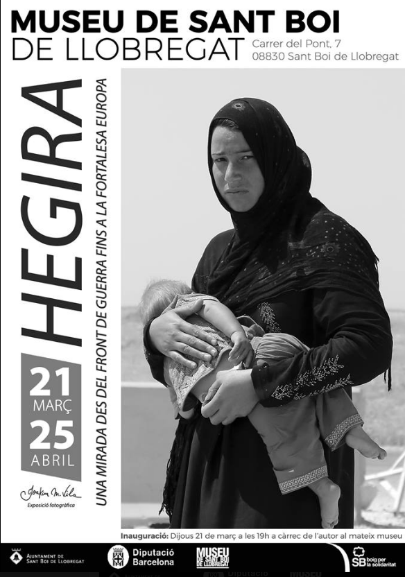 El Museu de Sant Boi acull del 21 de març al 25 d’abril una exposició fotogràfica que mostra els camins que segueixen les persones refugiades per arribar a Europa amb mig centenar de retrats i escenes quotidianes dins dels camps de refugiats i a les fronteres. Joakim M. Vila capta en blanc i negre i amb la màxima intensitat els desitjos i les pors d’aquells que fugen dels conflictes bèl·lics i de la pobresa cap a una vida millor a Europa.