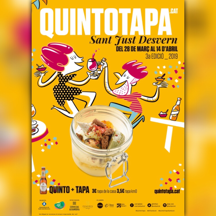 La tercera edició del QuintoTapa Sant Just Desvern torna al municipi amb l’objectiu de continuar apostant pels productes locals i de proximitat. Dinou restauradors i restauradores se situen rere els fogons amb més d’una trentena de propostes gastronòmiques amb el producte local i de temporada com a protagonista, després de l’èxit de vendre més de 27.000 tapes a la ruta 2018.
