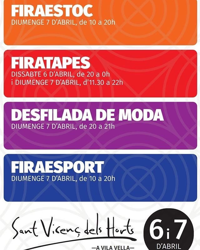 Tapes, esport i moda farciran aquest cap de setmana els carrers del centre de Sant Vicenç dels Horts amb la 20a edició de la Firaestoc , la 18a Firatapes i la 7a Firaesport. Per anar escalfant motors, el Firatapes començarà dissabte al vespre a la plaça de la Vila. El plat fort, però, s’espera diumenge.