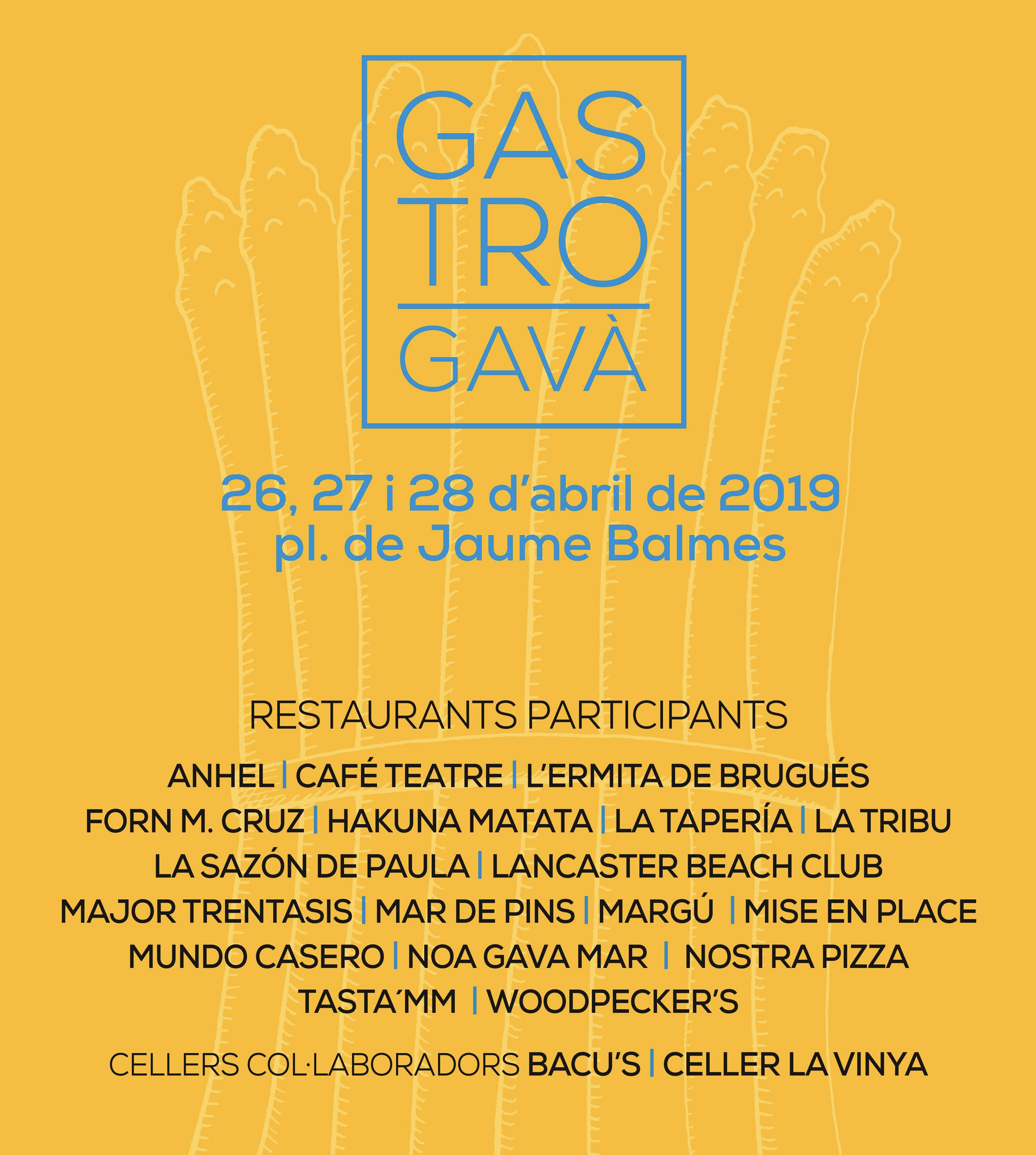 La Fira d’Espàrrecs de Gavà, amb més de sis dècades de trajectòria, és una mostra de la vitalitat comercial, agrícola i sociocultural de Gavà. Un dels centres de la fira serà la Plaça de Jaume Balmes, on GastroGavà oferirà degustacions de qualitat, amb Espàrrecs de Gavà, productes de l’Horta gavanenca i del Parc Agrari del Baix Llobregat, elaborats per 18 restauradors de la ciutat, que consoliden l’èxit de participació que es va aconseguir l’edició 2018. L’activitat compta amb la col·laboració de l’Agrupació de Restauradors de Gavà, que durant l’any dinamitza la restauració local a la ciutat.