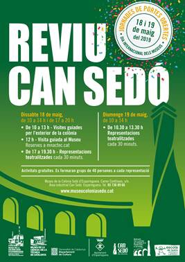 El cap de setmana del 18 i 19 de maig, en el marc del Dia Internacional dels Museus, el Museu Nacional de la Ciència i de la Tècnica de Catalunya (mNACTEC) organitza a la seva seu del Museu de la Colònia Sedó d’Esparreguera la programació especial “Reviu Can Sedó”, dues jornades de portes obertes amb activitats especials gratuïtes. El programa inclou una visita guiada al Museu, visites guiades a l’exterior de la colònia i representacions teatralitzades per reviure el passat industrial a l’antiga colònia tèxtil Can Sedó d’Esparreguera.