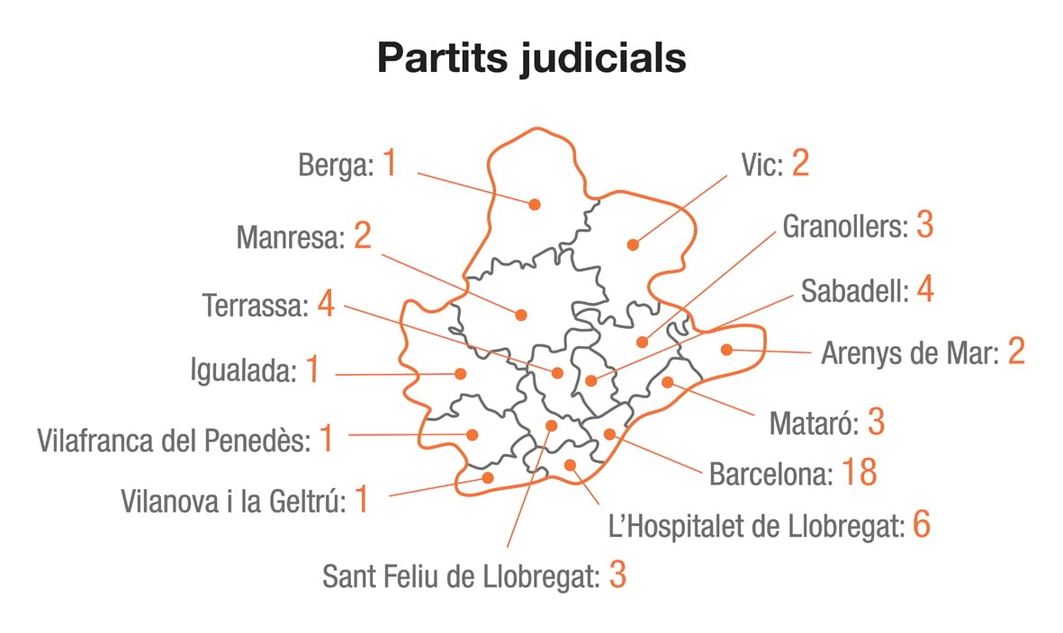 La Diputació de Barcelona té 51 diputats que es distribueixen de forma proporcional, en funció dels habitants, a través dels 14 partits judicials de la demarcació. El partit judicial amb més diputats és el de Barcelona (18), seguit de l’Hospitalet de Llobregat (6), Sabadell (4), Terrassa (4), Granollers (3), Mataró (3), Sant Feliu de Llobregat (3), Manresa (2), Arenys de Mar (2), Vic (2), Berga (1), Igualada (1), Vilafranca del Penedès (1) i Vilanova i la Geltrú (1).