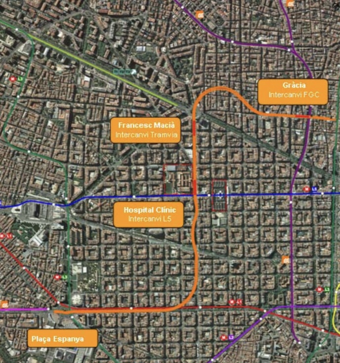 • Hospital Clínic, al carrer d’Urgell, entre Rosselló i Còrsega, que permetrà l’intercanvi amb l’L5 del metro