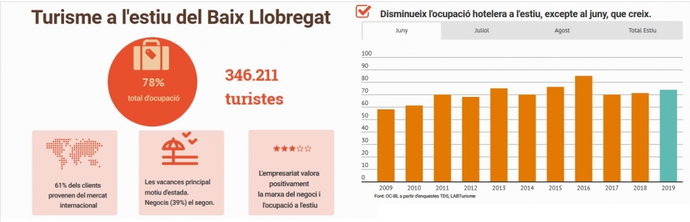 L’ocupació a l’agost ha estat el millor registre l’estiu (83%) i ha resultat ser superior a la de la província de Barcelona. Només la comarca del Maresme ha registrat una major ocupació.