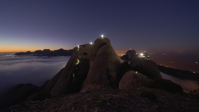 Han estat 500 els escaladors que, abans que es fes fosc, van fer cim a les agulles de Montserrat per il·luminar-les amb llums led de gran potencia. Les llum s’han mantingut obertes durant dotze hores. L’acte estava previst per la vigila de la diada, però va haver d’ajornar-se per la pluja. Ha estat organitzat per ANC, Òmnium, la Federació Excursionista i Artistes per la República.