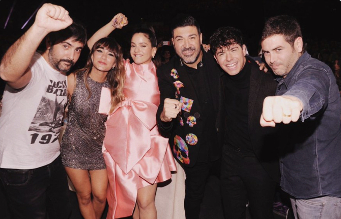 Tony Aguilar, que comparteix municipi amb Estopa va presentar dos dels premis i va publicar a les xarxes socials una fotografia cent per cent baixllobregatina.