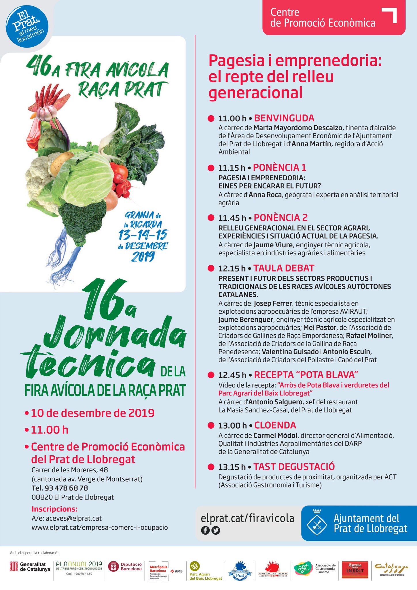Aquest dimarts 10 de desembre pel matí tindrà lloc al Centre de Promoció Econòmica la Jornada tècnica de la Fira Avícola, una jornada que aplega a criadors i pagesos del Prat, estudiants de cicle agrari i professionals del sector alimentari
