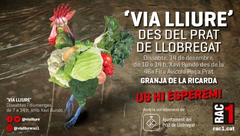 El presentador Xavi Bundó i tot el seu equip del programa “Via lliure” de RAC1 faran en directe el seu programa des de la Fira Avícola, d’11 a 14 h. Durant aquestes tres hores, tothom qui ho vulgui podrà acostar-se a la Granja de la Ricarda per seguir en viu aquesta emissió radiofònica, durant la qual parlaran persones convidades relacionades amb la Fira i amb el Prat. “Via lliure” és el programa matinal de ràdio de cap de setmana amb més audiència a Catalunya.