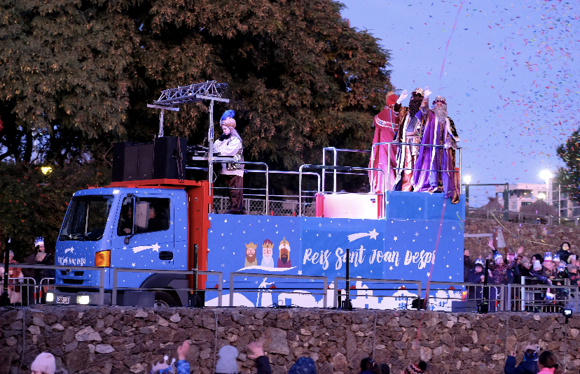 Un cop arribin, l’alcalde de Sant Joan Despí, Antoni Poveda, els entregarà la sal i el pa com a símbol d’hospitalitat, i després, els Reis iniciaran la Cavalcada per la ciutat a partir de les 18.25 h, al barri de les Planes. El seguici, compost per 13 carrosses, arribarà cap a les 21 hores a la plaça de Catalunya, i des del balcó de Can Negre, Ses Majestats rebran de l’alcalde, la clau màgica que obre totes les portes de la ciutat. Durant la Cavalcada es llençaran prop de 3.000 quilos de caramels sense gluten.