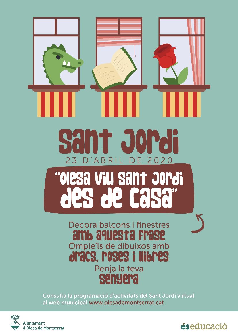 L’Ajuntament també fa una crida a que la ciutadania engalani finestres i balcons amb roses, dibuixos de dracs i senyeres, així com la frase “Olesa viu Sant Jordi des de casa”.