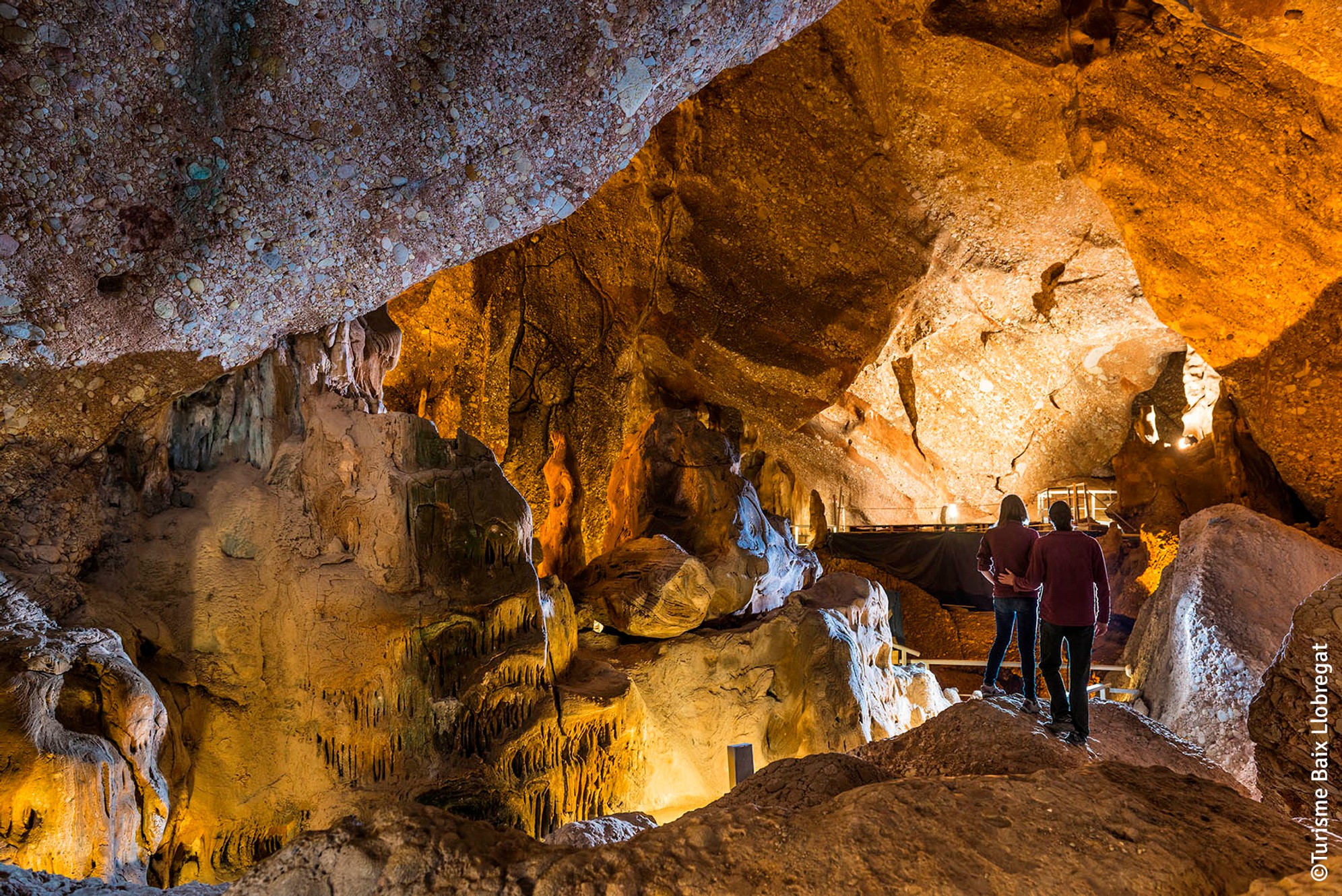 Només cal traspassar el llindar de l’entrada per encetar un recorregut d’uns 400 metres i 500 esglaons seguint els conductes més espaiosos i més bellament ornamentats per les successives generacions d’espeleotemes (estalactites, estalagmites i columnes). Passeig enriquit per experts guies que, a més d’explicar-nos les característiques i el resultat del procés geològic que ha donat forma a la cavitat, ens mostraran l’hàbitat dels primers pobladors de Montserrat i ens endinsaran en un món d’històries i llegendes.