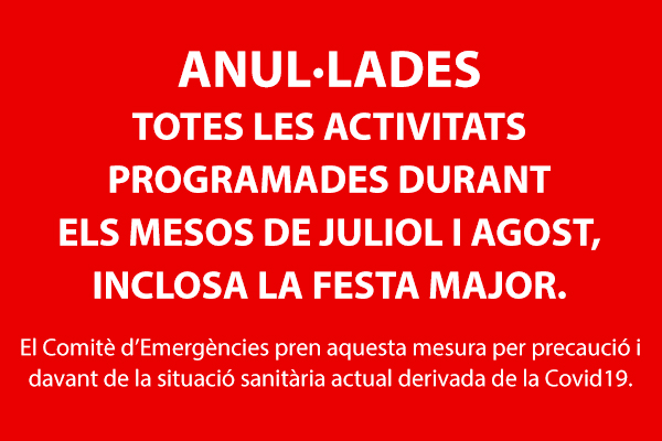 D’altra banda, s’han extremat les mesures de control als casals d’estiu i activitats esportives que es realitzen amb grups estables de persones assistents. La presa de temperatura és obligada abans de tota activitats i les persones responsables vetllen en tot moment pel bon desenvolupament de l’activitat. En relació al Casal de Joves, es manté el Casal d’Estiu però s’han anul·lat les sortides fora del municipi i parcs d’atraccions per evitar espais amb alta concentració de persones de diferents indrets.