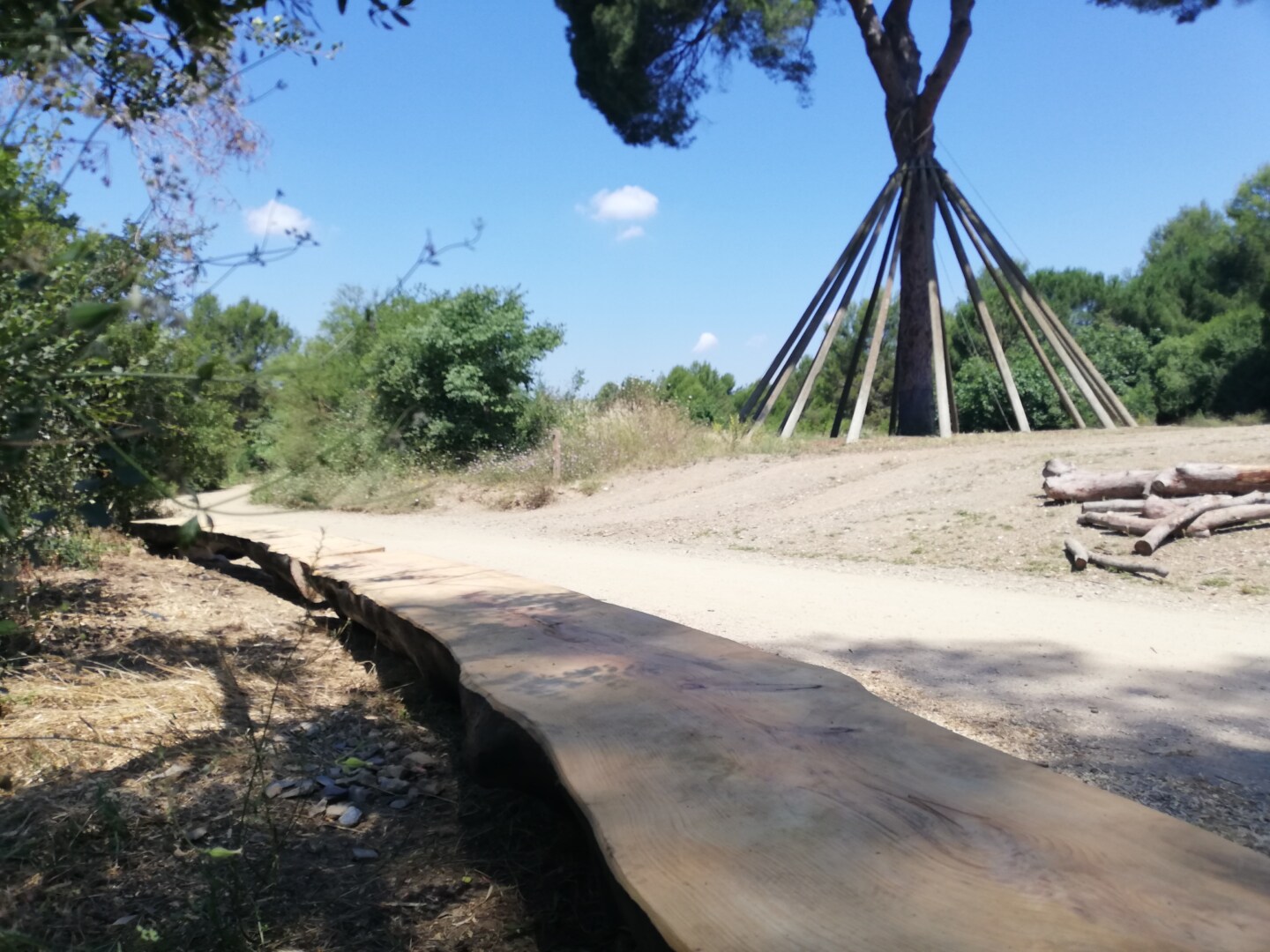 Consisteix en la col·locació de 7 bancs construïts, cadascun, amb un tronc caigut dels boscos del Parc, que no es tallen expressament per aquest projecte sinó que s’aprofiten: o bé s’han tallat arrel d’una actuació de millora forestal o bé han caigut de manera natural. Tot i que els arbres més indicats per a la construcció d’aquests elements són els pins, també se n’està construint un d’un cedre.