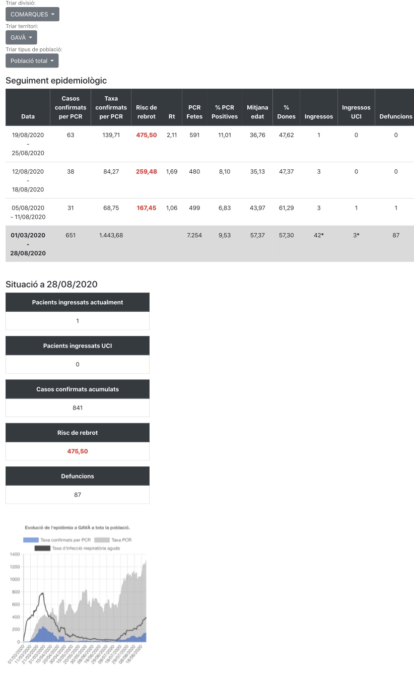 Ahir divendres Gavà va assolir un índex elevat de rebrot (458,1) i una taxa de contagi de 2,16, és a dir, cada portador podria infectar a dues persones.