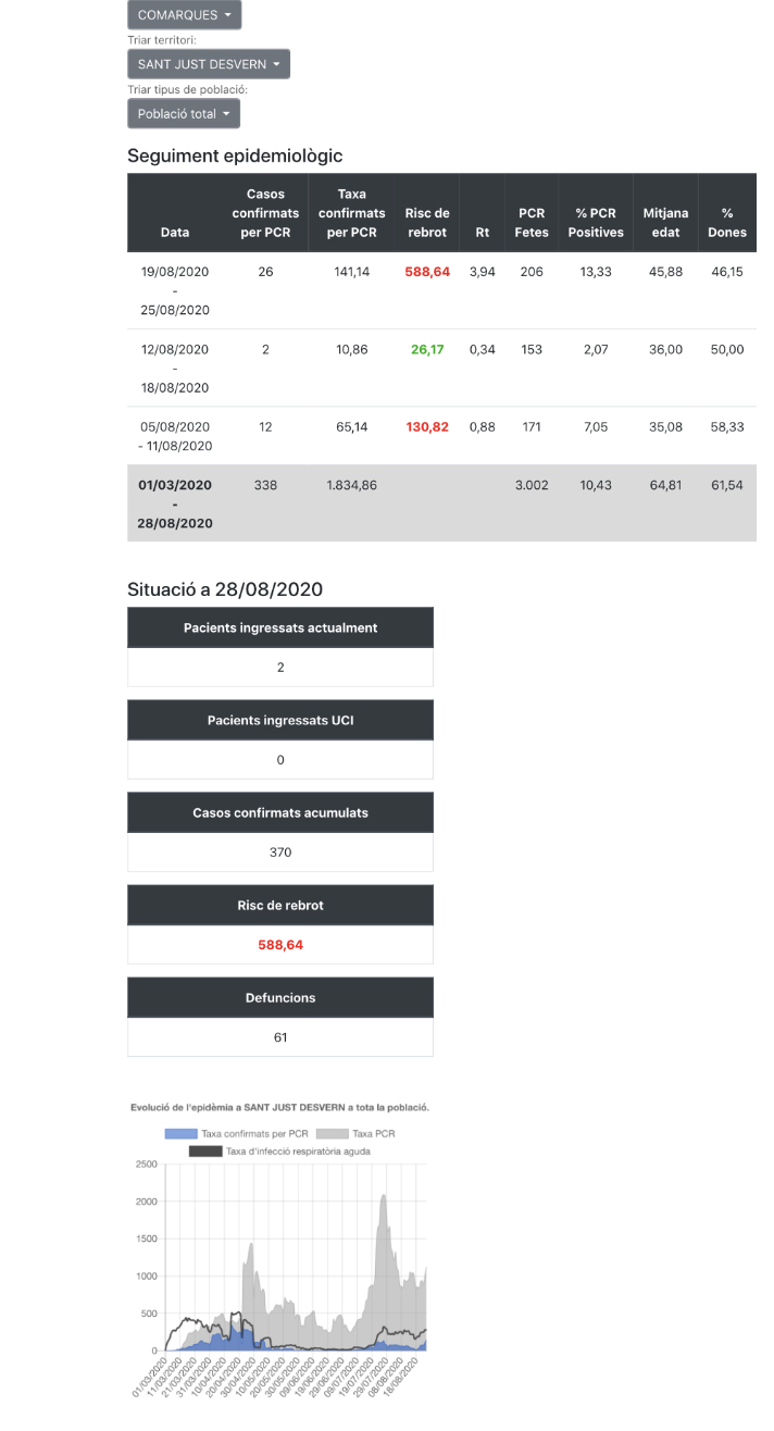 Sant Just Desvern també ha sofert un augment de l’índex de rebrot en els últims dies, amb una dada del 472,5.