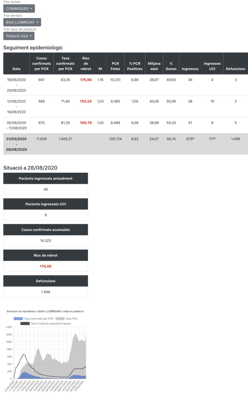 Gavà i Sant Just incrementen el risc de rebrot, juntament amb l’Hospitalet.