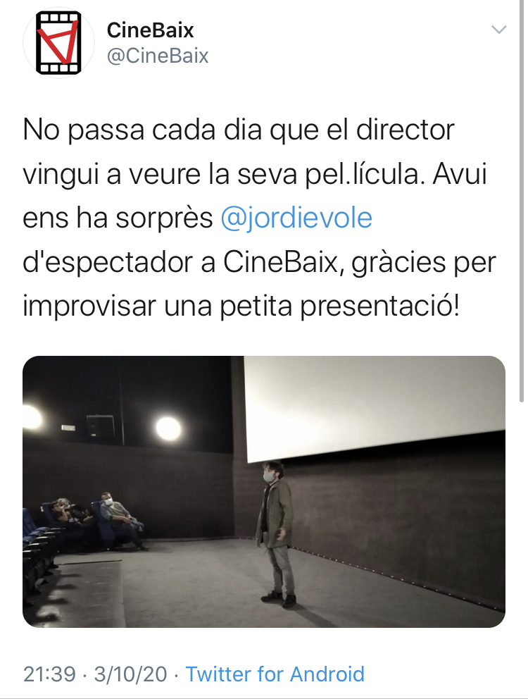 Posteriorment, Cinebaix li va agraïr el gest amb un tuit: